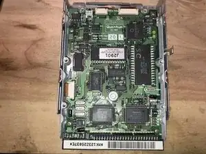 Вот жесткий диск. Он фактически установлен «вверх ногами». Вы смотрите на плату контроллера диска