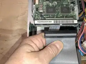 Далее отсоедините кабель данных. Красная полоса всегда подключается к контактy 1 разъема