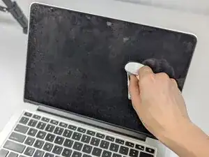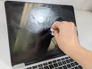 Аккуратно втирайте покрытие с ватного диска в экран MacBook круговыми движениями.