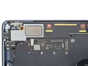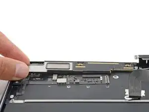 Руководство по снятию правого динамика после удаления логической платы.