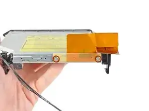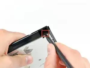 Инженеры Apple не очень разбирались в прогибах и жесткости материалов, когда посещали "колледж", поэтому этот оптический привод особенно трудно удалить, поскольку кронштейн слишком гибкий. В следующих шагах потребуется терпение и значительное усилие.