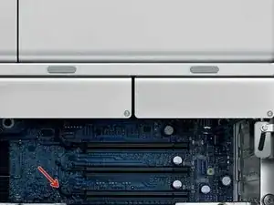 Найдите видеокарту в открытой части боковой панели вашего Mac Pro.