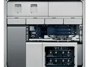 Ваш Mac Pro должен выглядеть примерно так. Если нет — найдите другое руководство или используйте это как подсказку для Mac Pro второго поколения; процесс очень похож на PowerMac G5 (за исключением программной части). Извините за стоковое фото.