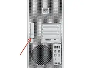 Чтобы удалить текущую видеокарту, найдите крышку PCI, расположенную над видеокартой сзади.