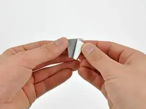 Снимите защитную подложку с одной стороны двусторонней ленты и приклейте кусочки по четырём углам жёсткого диска.