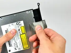 Немного приподнимите левый край оптического привода и потяните его в сторону правого края заднего корпуса.