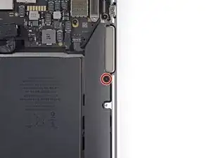 Используйте торкс-отвёртку T3, чтобы вынуть винт 4,2 мм, фиксирующий правый динамик к корпусу.