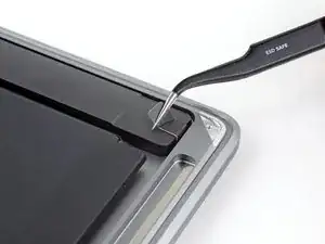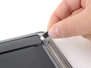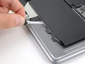 Если клейкая полоска порвётся, используйте нагретый iOpener, тепловую пушку или фен, чтобы помочь удалить клей: