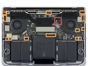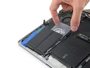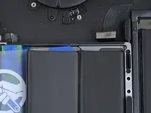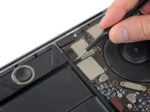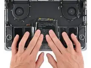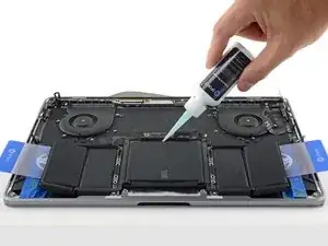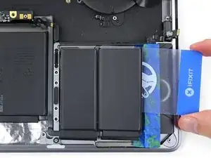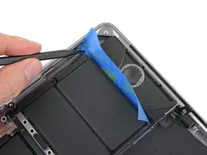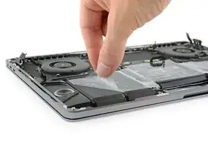 Перед установкой нового аккумулятора удалите весь оставшийся клей с корпуса MacBook Pro.