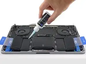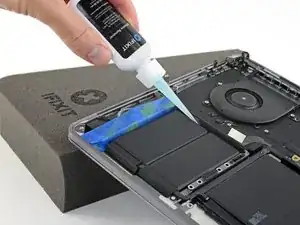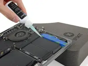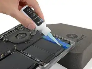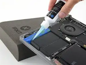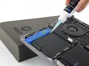 Следуйте этим инструкциям, чтобы заменить приклеенный аккумулятор в вашем MacBook Pro, используя комплект iFixit с растворителем для клея. Растворитель ослабляет клей, удерживающий старый аккумулятор, что облегчает его извлечение.