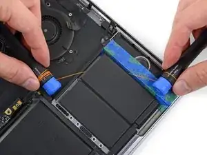 Повторите последние несколько шагов, чтобы отделить левую крайнюю аккумуляторную ячейку.