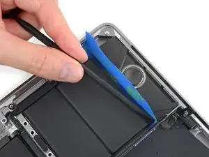 Поднимите, чтобы полностью отделить клей, но пока не пытайтесь удалять аккумуляторную ячейку.