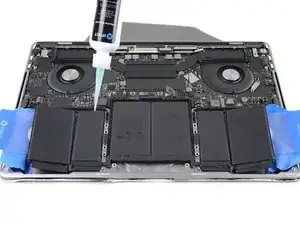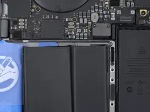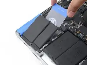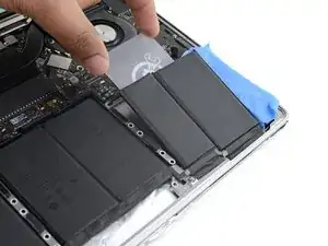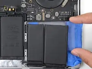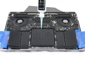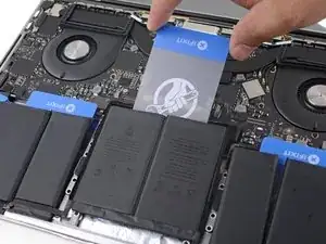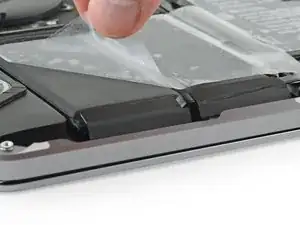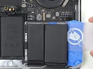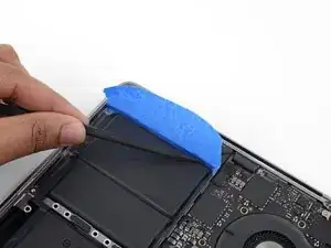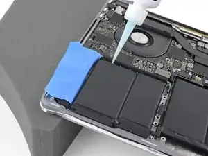 Перед установкой нового аккумулятора удалите весь оставшийся клей с корпуса MacBook Pro.