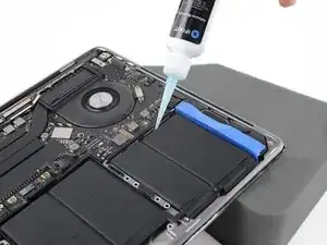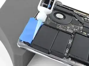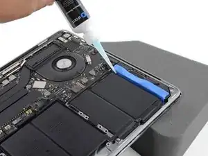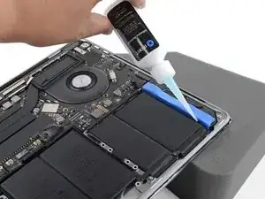 Следуйте этим инструкциям, чтобы заменить вклеенный аккумулятор в вашем MacBook Pro, используя комплект iFixit с растворителем для клея. Растворитель помогает ослабить клей, удерживающий старый аккумулятор, что облегчает его извлечение.
