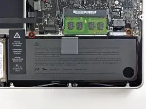 Замените аккумулятор в вашем MacBook Pro 13" Unibody середина 2010 года. Если ваш аккумулятор раздут, соблюдайте соответствующие меры предосторожности.