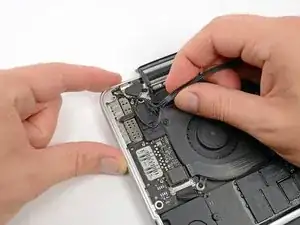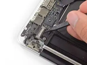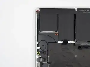 Удалите два винта T5 Torx 3,2 мм, фиксирующие плату аккумулятора.