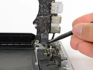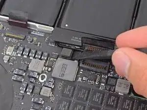 Снимите кабель платы ввода-вывода с MacBook Pro.