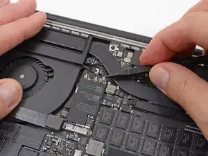 Перед установкой нового аккумулятора удалите весь старый клей с корпуса MacBook Pro.