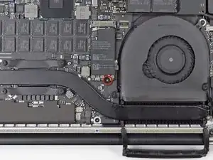 На некоторых моделях также удаление серебристого винта T5 Torx 3,5 мм от радиатора может облегчить снятие платы ввода-вывода.