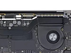 Установите её на место и совместите скользящие защёлки возле петли дисплея. Нажмите вниз и сдвиньте крышку к петле. Она должна остановиться, когда защёлки войдут в зацепление.