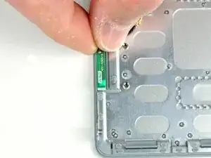 Снимите два винта Phillips 2.8 мм в отсеке для батареи рядом с защёлкой.
