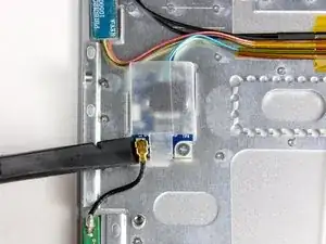 Выньте антенну Bluetooth из её посадочного места в верхней крышке. Антенна может быть приклеена к верхней крышке, поэтому покачивание платы антенны из стороны в сторону может помочь легче её освободить.