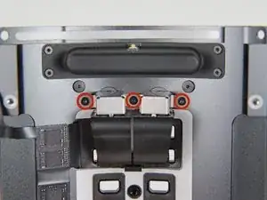 Удалите четыре винта T8 Torx длиной 5,5 мм, фиксирующие блок питания к корпусу Mac Pro.