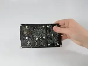 Чтобы освободить плату логики, выкрутите четыре винта T8 Torx длиной 5,5 мм из внутренней конструкции.
