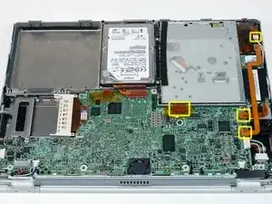 Отсоедините кабели оптического привода, модема и инвертора от материнской платы, при необходимости удалив скотч.