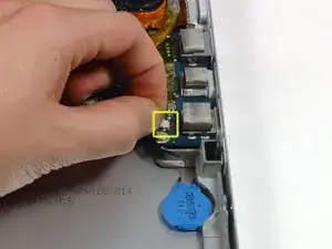 Отсоедините кабель батареи ПЗУ от нижнего правого угла логической платы.
