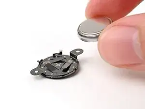 При сборке поместите плоскую, более блестящую сторону батарейки в секцию держателя с положительным знаком.