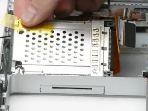 Поднимите шлейф Airport, чтобы получить доступ к черному разъему антенны Airport.