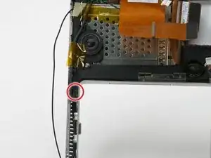 Удалите черный винт Phillips на нижнем углу платы левого динамика.