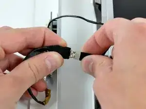 Возьмите разъём кабеля данных дисплея за чёрную защёлку и потяните его прямо вверх, чтобы отсоединить от платы логики.