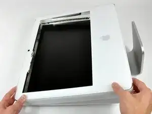 Положите переднюю рамку над остальной частью iMac.