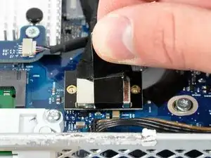 Удалите два винта T6 Torx, 4,8 мм, фиксирующие кабель данных дисплея к плате логики.