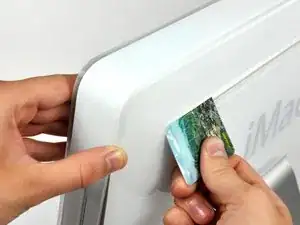 Продвиньте карту к верхней части iMac, чтобы освободить защёлку передней рамки.