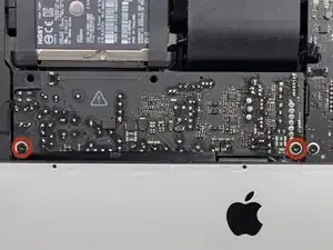 Вам может понадобиться отодвинуть клей дисплея, выстилающий нижний край корпуса iMac, чтобы получить доступ к винтам.