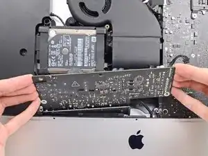 Снимите левый и правый кронштейны жёсткого диска с iMac.