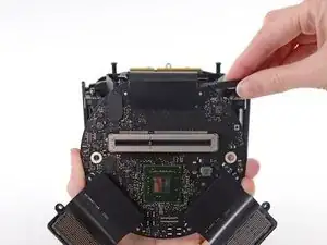 Осторожно выведите плату соединения прямо вверх из слотового соединения логической платы.