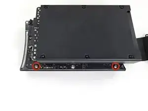 Удалите четыре винта Torx T8 длиной 5,5 мм, удерживающие блок питания в корпусе Mac Pro.