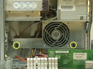 Удалите по винту из каждой из двух ниш в нижней части вентилятора крестовой отверткой PH #1.