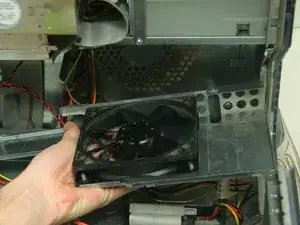 Корпус вентилятора останется подключён к компьютеру с помощью силового кабеля, который будет отключён на следующем шаге.