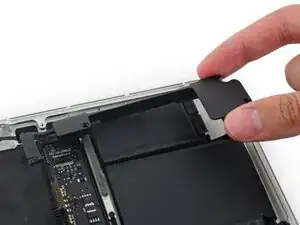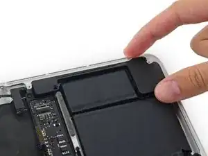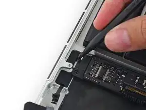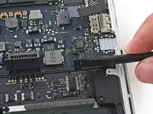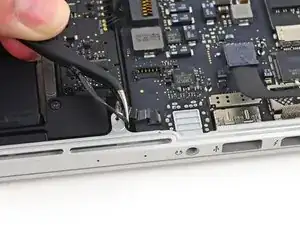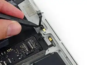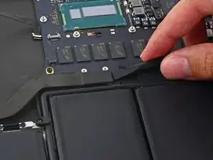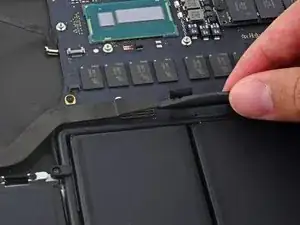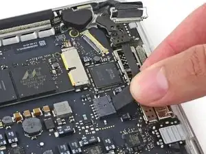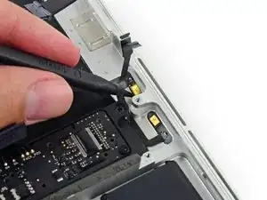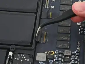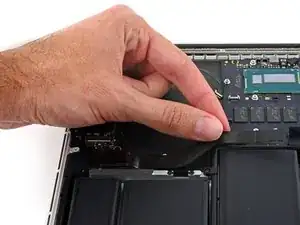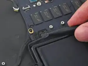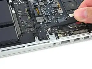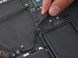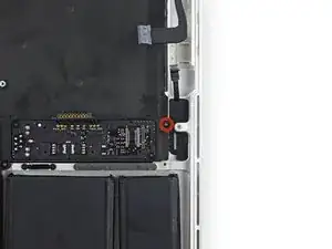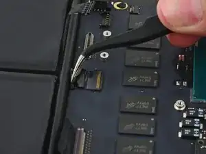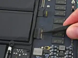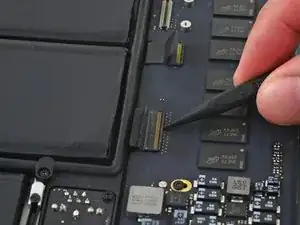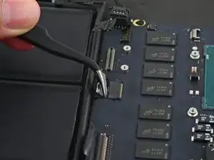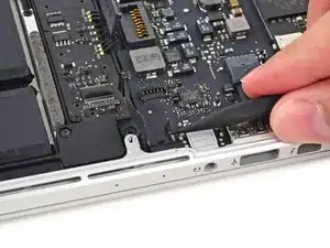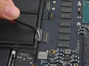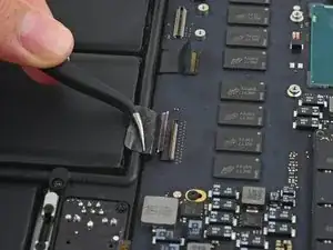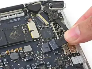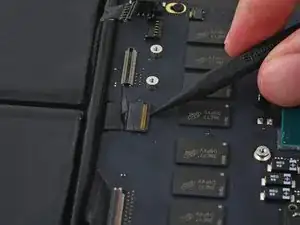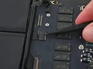 Вытяните ленточный кабель трекпада прямо из его гнезда на плате логики.