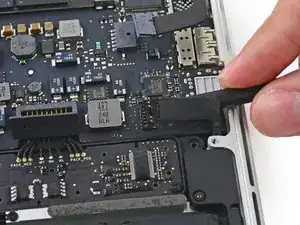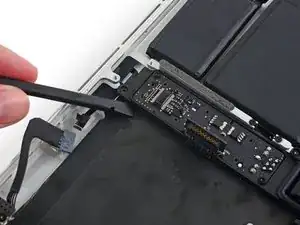 Используйте плоский конец демонтажной лопатки, чтобы поднять разъём аккумулятора вертикально вверх из его гнезда на логической плате.