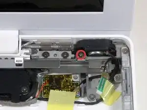 Удалите единственный винт Phillips, фиксирующий правый динамик к нижнему корпусу.