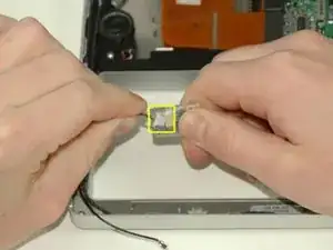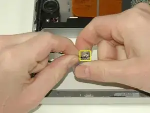 Снимите оранжевую ленту, фиксирующую ленточный кабель трекпада к логической плате.