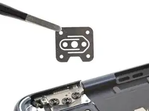 Используйте отвертку T3 Torx, чтобы вынуть два винта 1,5 мм, фиксирующие крышку разъёма аккумулятора.