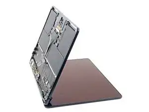 Четыре скользящих защёлки вдоль заднего края MacBook прочно фиксируют нижнюю крышку. Для отделения этих защёлок требуется значительная сила — рассмотрите возможность использования перчаток, чтобы защитить руки от острых кромок нижней крышки.