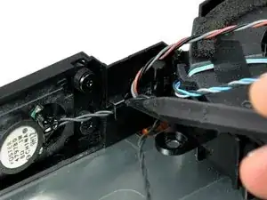 Используйте наконечник лопатки, чтобы вывести кабель динамика из зажима на внутренней рамке.